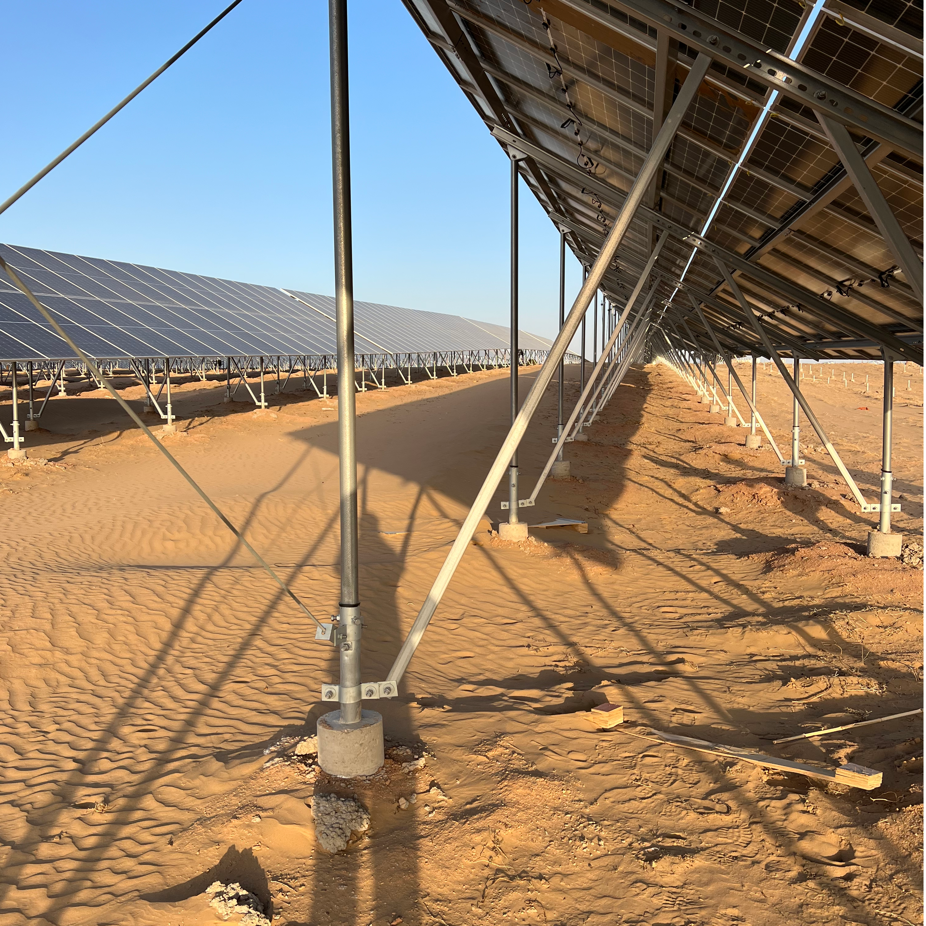 O sistema de montagem do solo solar é uma estrutura de suporte para a instalação de painéis solares, que é amplamente utilizada nas usinas de energia do solo. Esse sistema de suporte geralmente consiste em parafuso de terra e quadros fixos. Pode ser organizado de maneira flexível e ajustado de acordo com as características do solo para melhorar a eficiência da absorção da energia solar. As vantagens dos sistemas de suporte solar no solo incluem instalação fácil, ajuste flexível, forte capacidade de carga e baixo impacto no ambiente do solo. Além disso, o sistema de suporte do solo solar também tem a vantagem de fácil manutenção e gerenciamento, o que pode melhorar a eficiência operacional da usina solar.